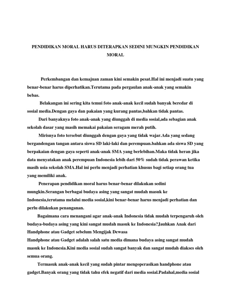 Pendidikan Moral Harus Diterapkan Sedini Mungkin Pendidikan Moral Pdf